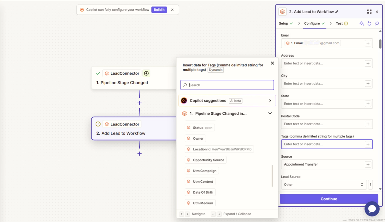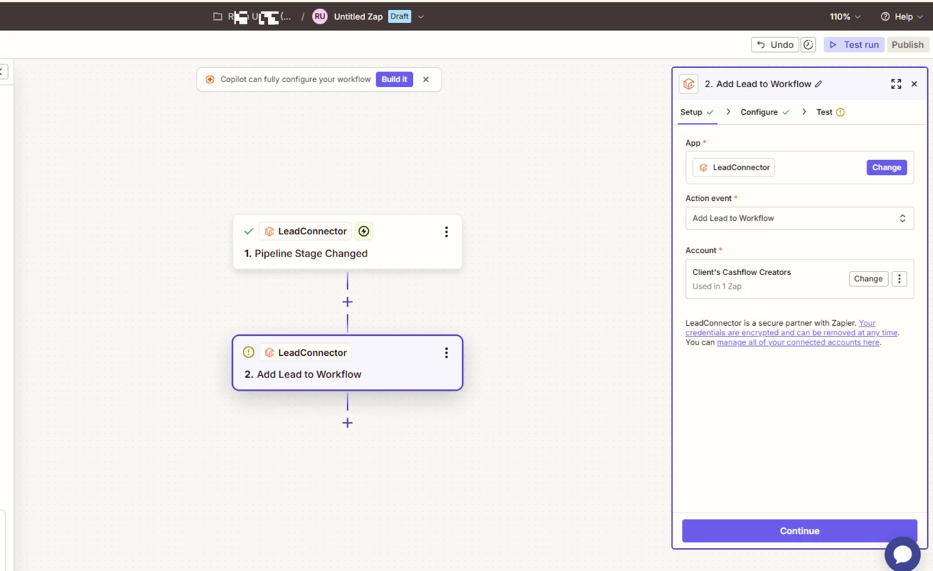 Hey all! I have a very basic 2 step Zap. I’m API an appointment over to another GHL. the first trigger is pipeline updated to booked appointment. Then the idea is to add it to a pre-call workflow. I’ve connect both accounts, one to each step but on step 2 the correct tags aren’t populating. All the correct field are there and copy exactly what that account has but it’s pulling the tags from another account. How do I fix this?
