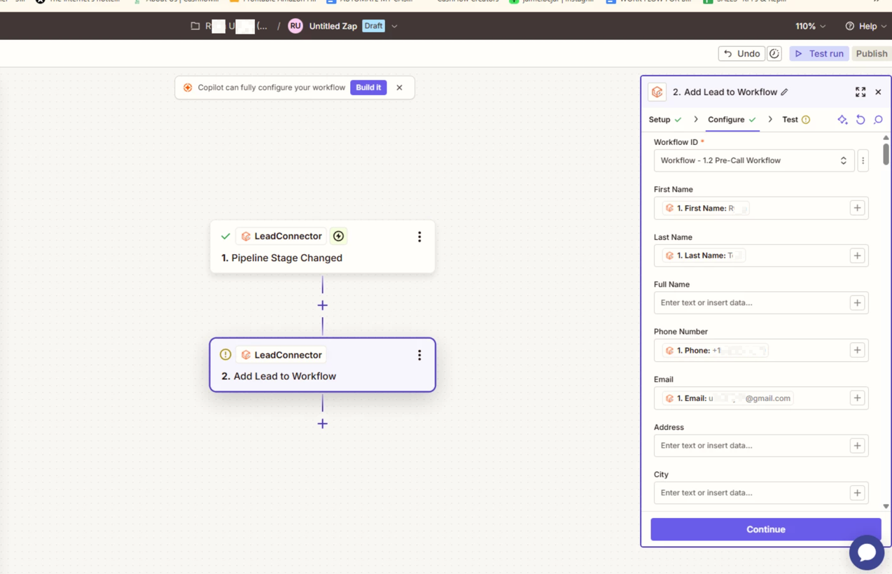 - how your Zap steps are configured in the CONFIGURE tab while in EDIT mode with the field mappings visible