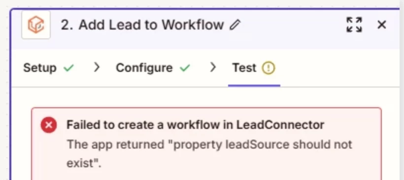 Just came across this and wanted to check how you’re getting on. Did changing the value in the Lead Source field resolve the issue, or are you still seeing that error?