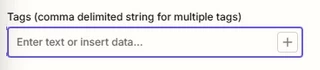 The Tag field label in the screenshot below is a single input field that lets you specify tags by delimiting them with a comma.