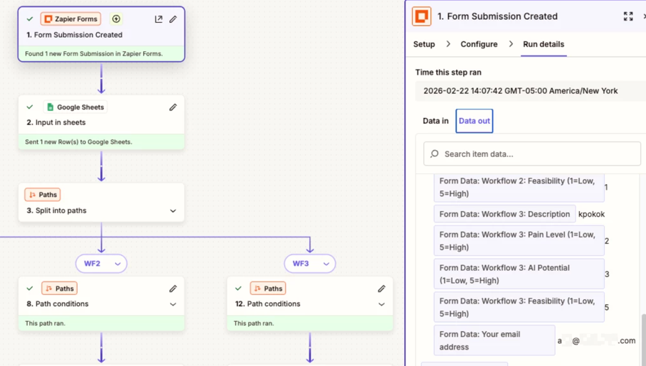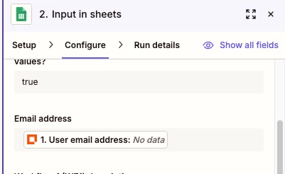 If the email is still blank on new submissions, the issue is usually that the form is passing the email as a label instead of a value in the field mapping. Go into your Zap step → click the email field → make sure you're selecting the actual email value and not a field label.