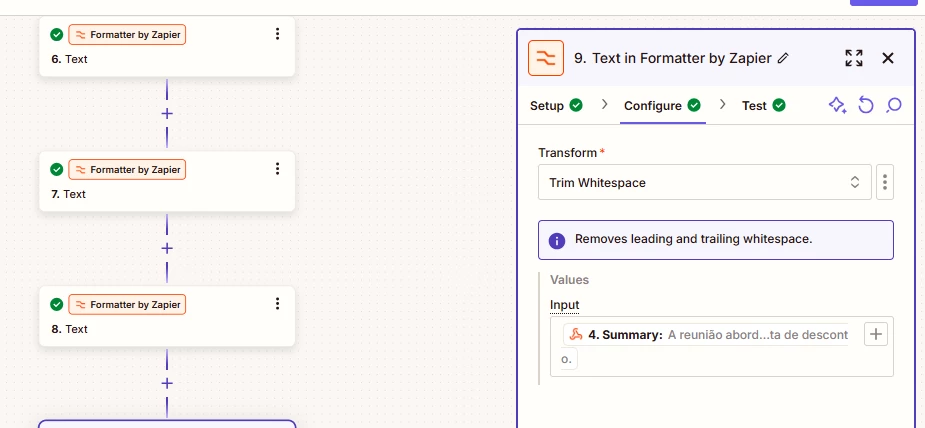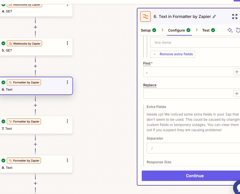 Those (attachments) are all the ways we’ve been using formatter, but still the text is coming with a dot and a comma in all the paragraphs (text.png). What should we do?