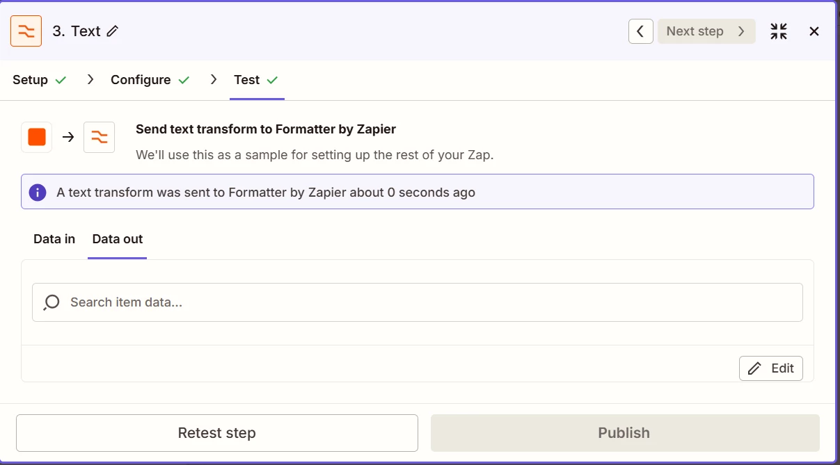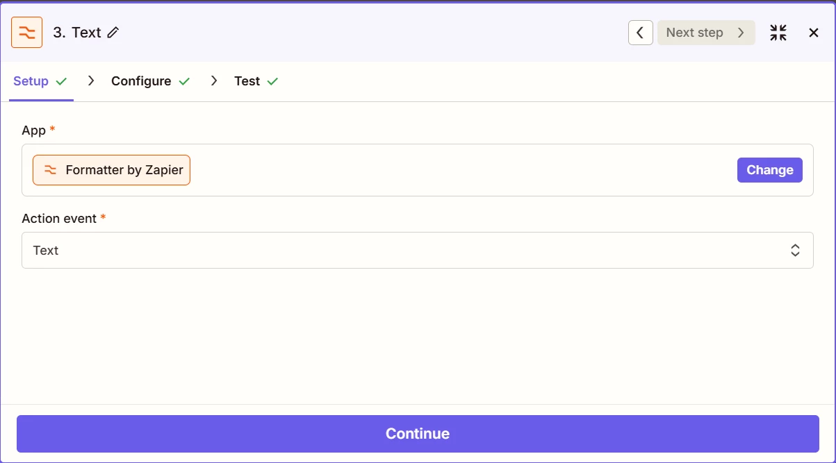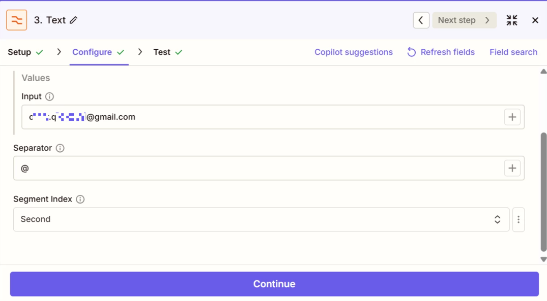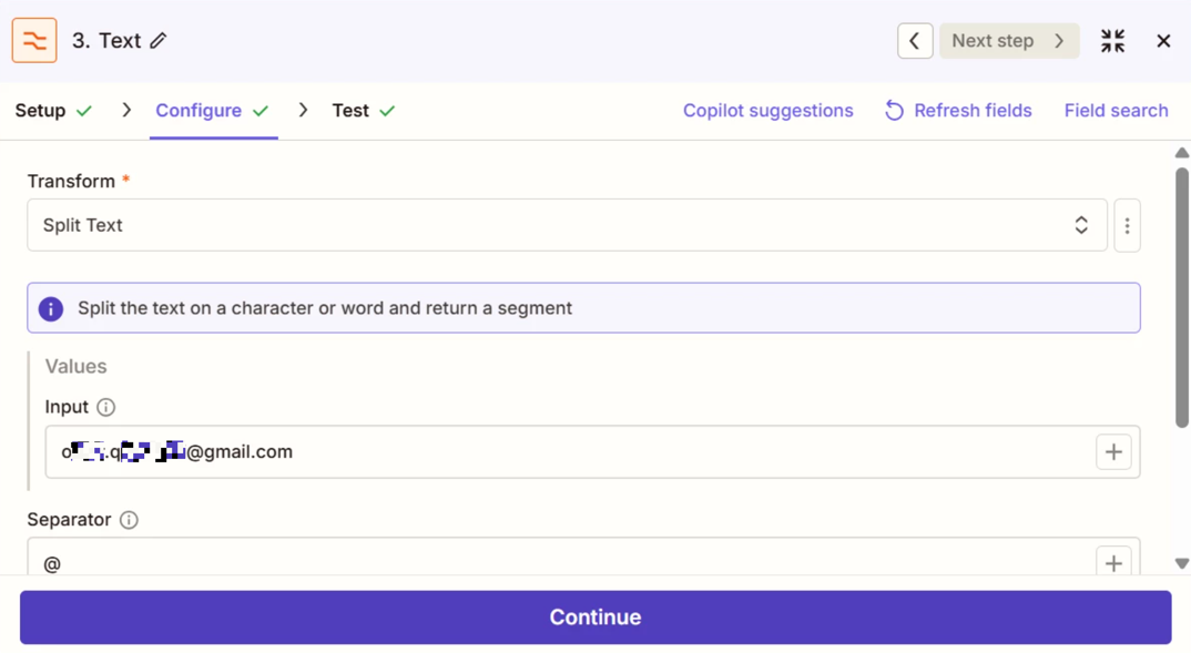 I’m doing the Customize your Zap module and trying to use Formatter by Zapier → Text → Split Text.