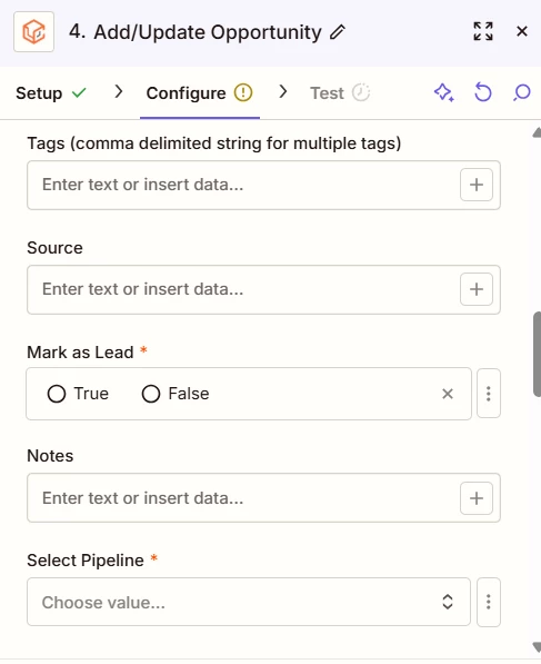 We are trying to integrate Jobber sent quotes $ amount to update the lead opportunity value in GHL. However, the opportunity value is not appearing in Zapier configuration setup menu. Need help in configuring this.