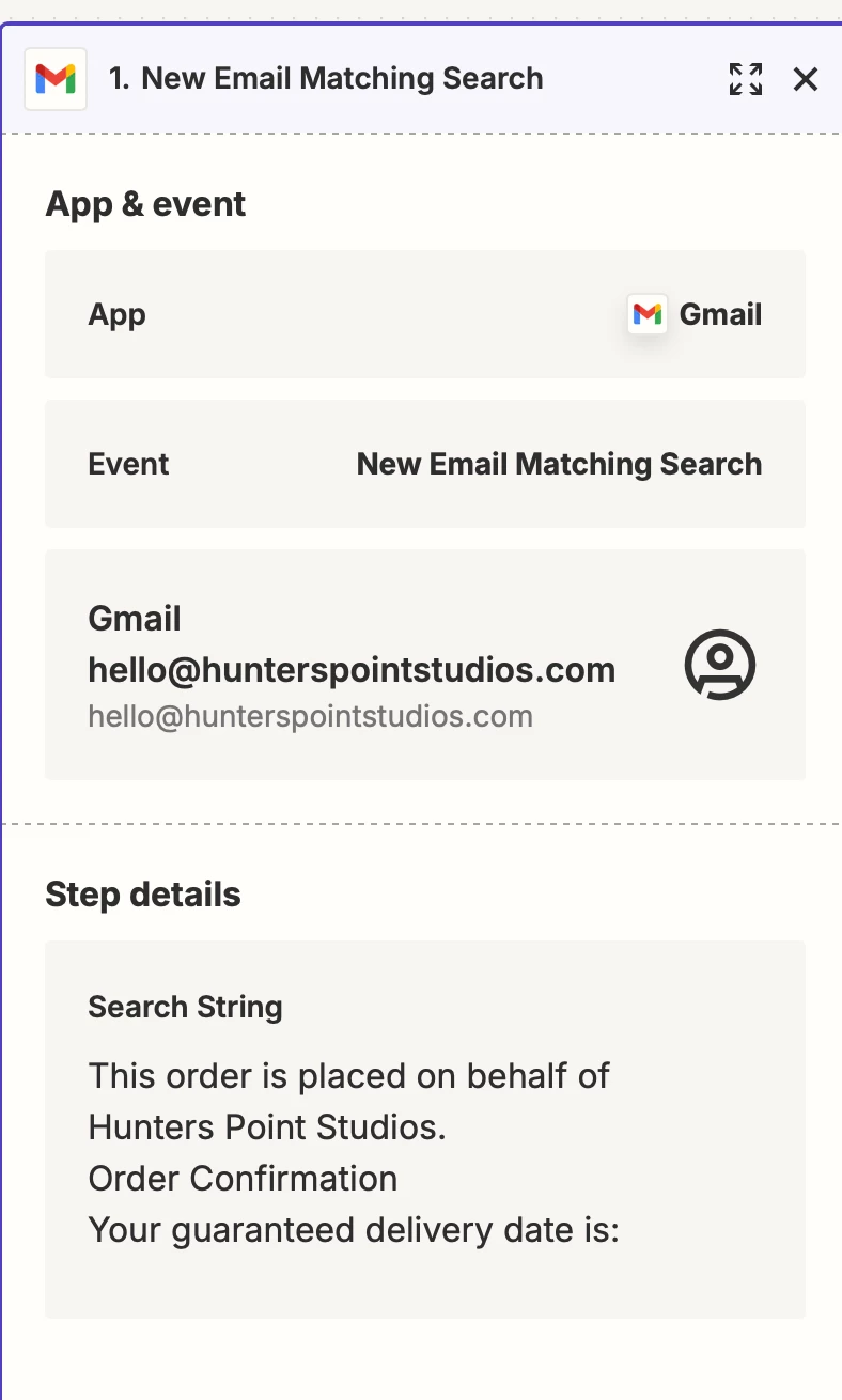 For your Zap trigger step, looks like the Search String field needs to be adjusted to be more specific.