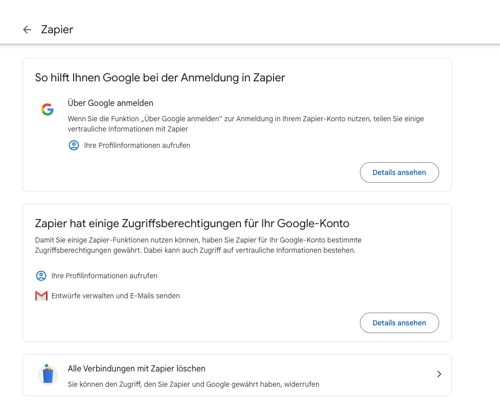 I tried to use Zapier for a zap with Gmail.