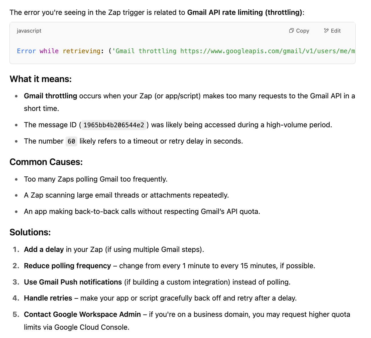Error code: Error while retrieving: ('Gmail throttling https://www.googleapis.com/gmail/v1/users/me/messages/1965bb4b206544e2', 60)