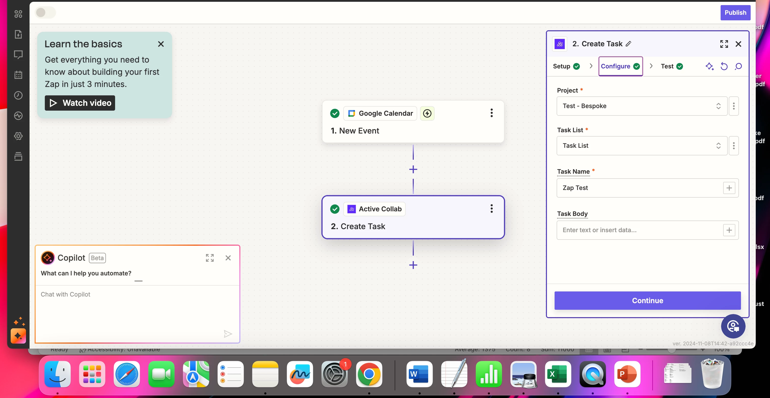 I am in the process of setting up a Zap between Google Calendar and ActiveCollab. So a calendar event in Google to a Task in ActiveCollab.