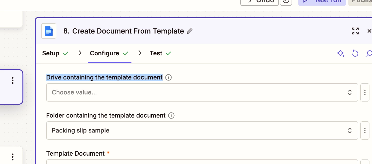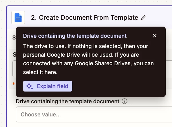when i want to select the default “my google drive” in the configure tap of google docs is not responding