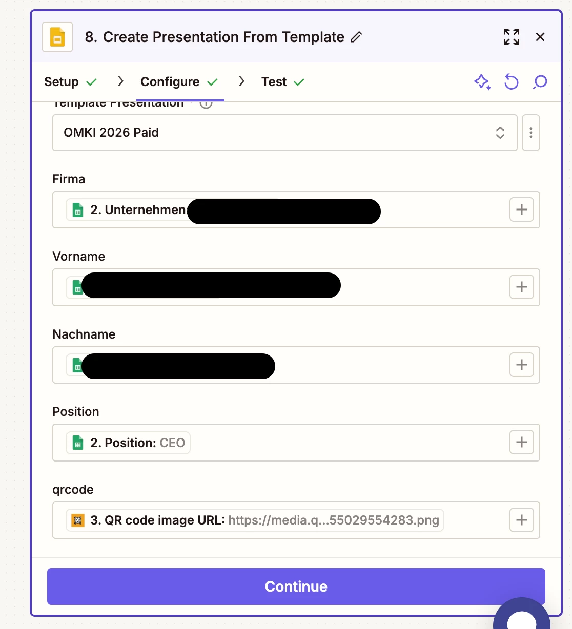 In my Google Slides template, I have a text placeholder: {{qrcode}}
