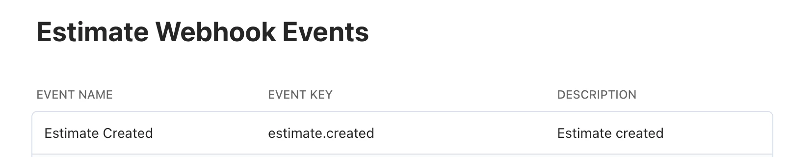But there is a workaround by creating a webhooks for Estimate creation in Housecall Pro and catching that in Zapier using Webhooks in Zapier. Here is Housecall Pro webhooks documentation- https://docs.housecallpro.com/docs/housecall-public-api/46e9e1be07621-webhooks. See the image below for Estimates Webhook-