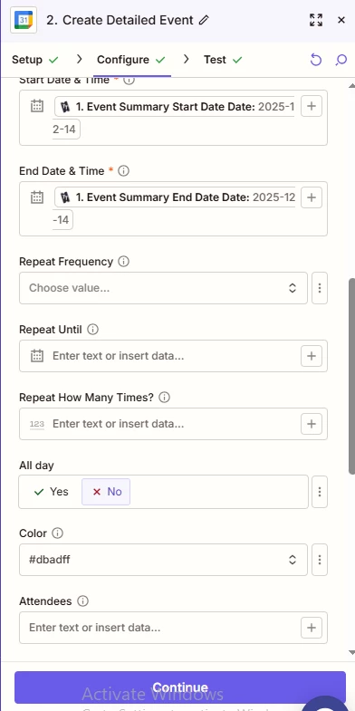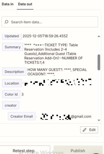 If the customer bought ticket today at 3pm for Saturday at 7pm- the zap creates a google calendar event for today at 3pm. How can I fix this?