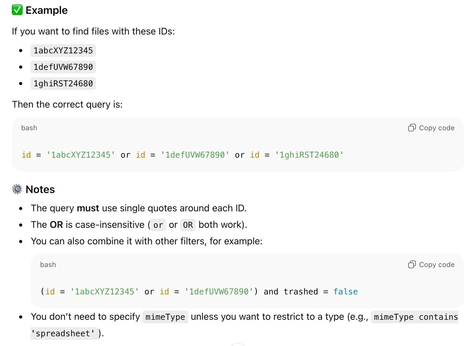 - I find the appropriate file names & file IDs via lookup spreadsheet rows