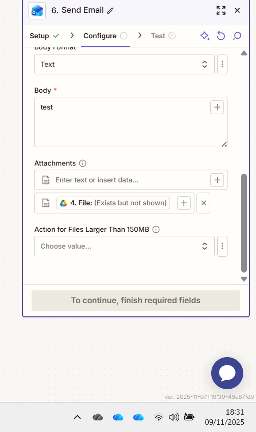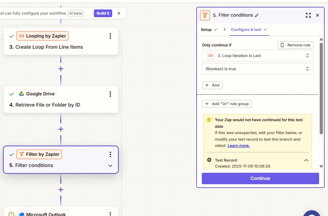 - Send off Outlook email with attachment (it comes up as a aws zapier link)