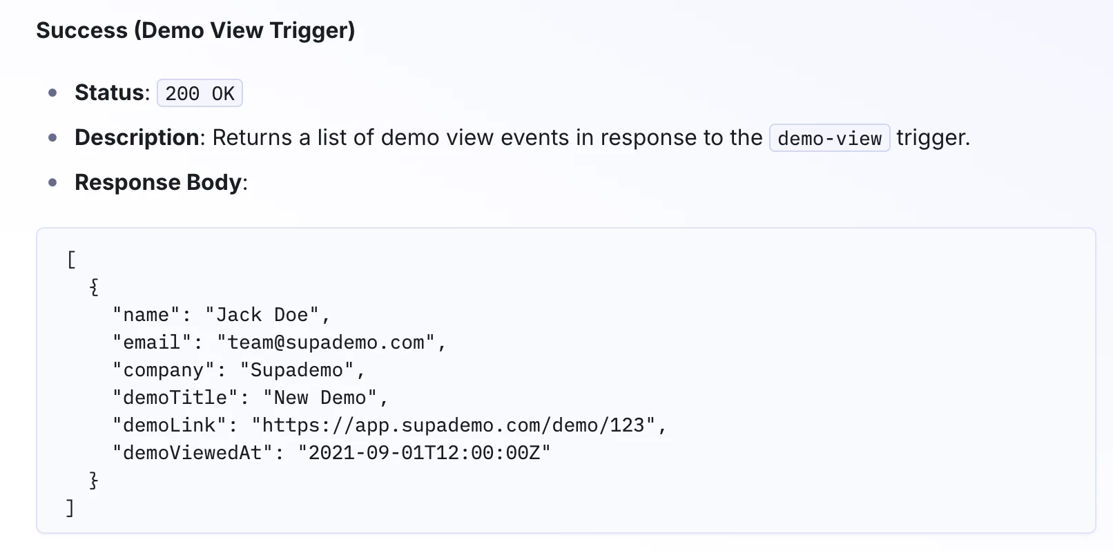 - And, my goal is to be able to capture fields from Supademo such as the email, demo title, and the name.