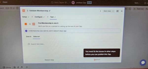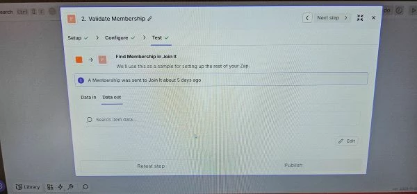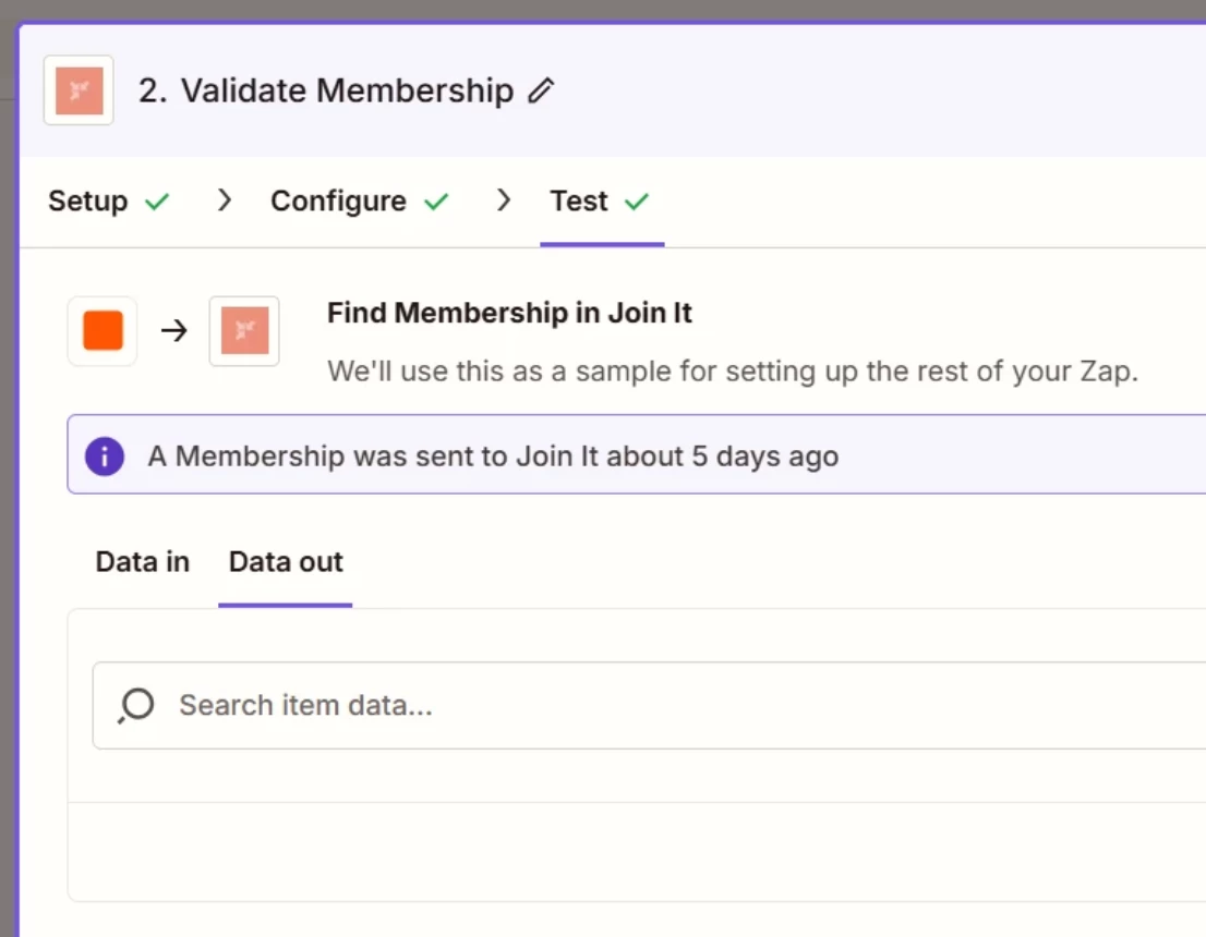 We are trying to set up a Zap that will validate membership status from Join It when someone makes a reservation using YouCanBookMe. First step: booking created on the page we’ve selected; second step: validating membership with Join It. At this point, the Zap will not publish because it says it needs an action added to the Join It step--but I can’t find an appropriate action to add. What is the final action needed to complete the Zap?