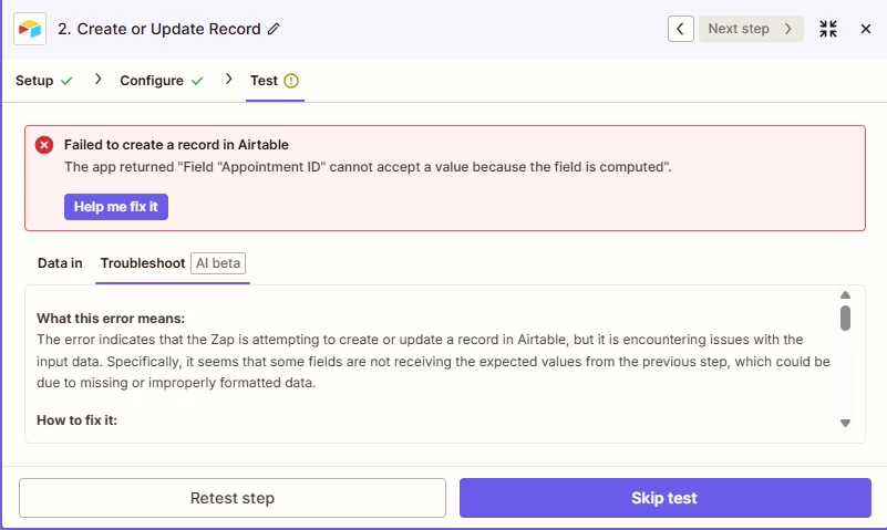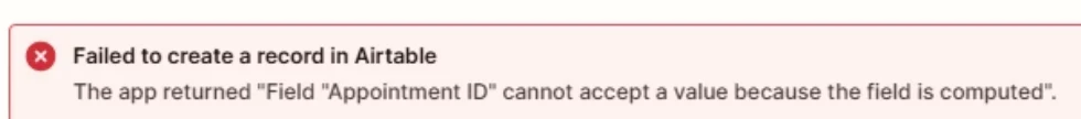 There error indicates the field “Appointment ID” is computed, which means that field is a formula, rollup, lookup, autonumber, or any other “computed” type.
