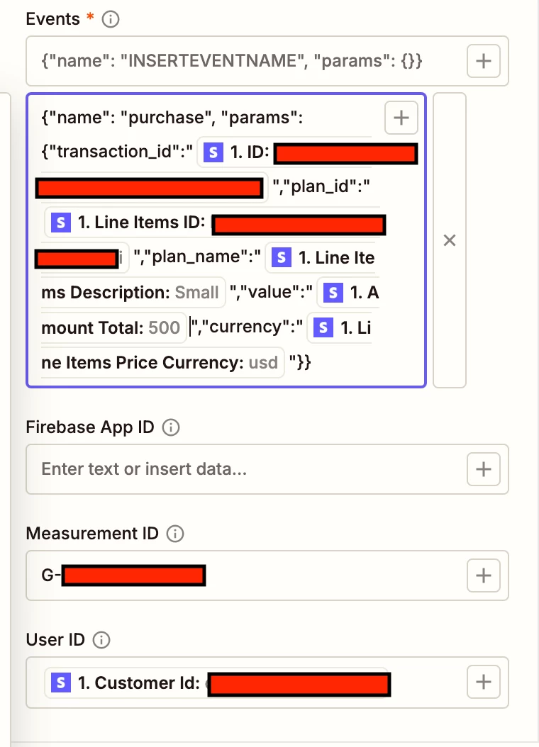 Hi, can someone help me set up a Zap in Zapier that sends Stripe information to Google Analytics? For some reason, any Stripe data I try to pass resolves to placeholder text like this {{323224761__amount}} in Google Analytics. Has anyone else experienced this, and how did you fix it? I also tried converting Stripe inside Formatter and it was sending a placeholder for Formatter to Google Analytics. Here’s attached image of what I’m try to send. It passes Zapier formatting test and is able to send data to Google Analytics, but data that is received are placeholders. I also did a test to send Stripe data to Gmail and it was able to send the data I wanted and not placeholders.