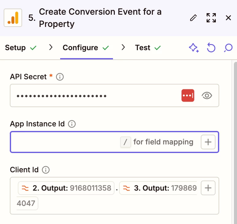 Based on your screenshots it looks like you are actually using this Zap action: GA4 - Send Measurement Events for an Application