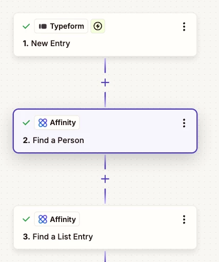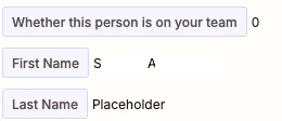 I am creating a person object and adding them to a list in Affinty. Wehn I create the person in Affinity, the Last Name value is “Placeholder. ” Even though the original typeform has a first name and last name. Additionally, I cannot update the name fields in Affinity with a workaorund to this. Please see screenshots.