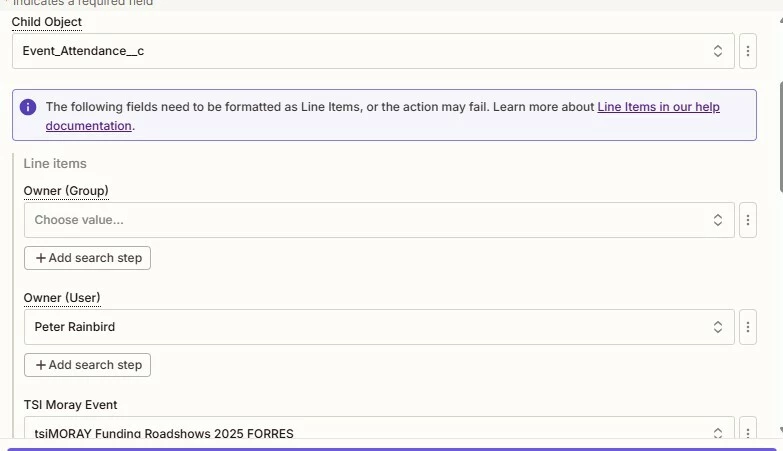 The Salesforce fields that need the data are both ‘Lookup’ fields and as I say I can use a static item but I can not figure out how to use a custom item to complete the zap. Many thanks.