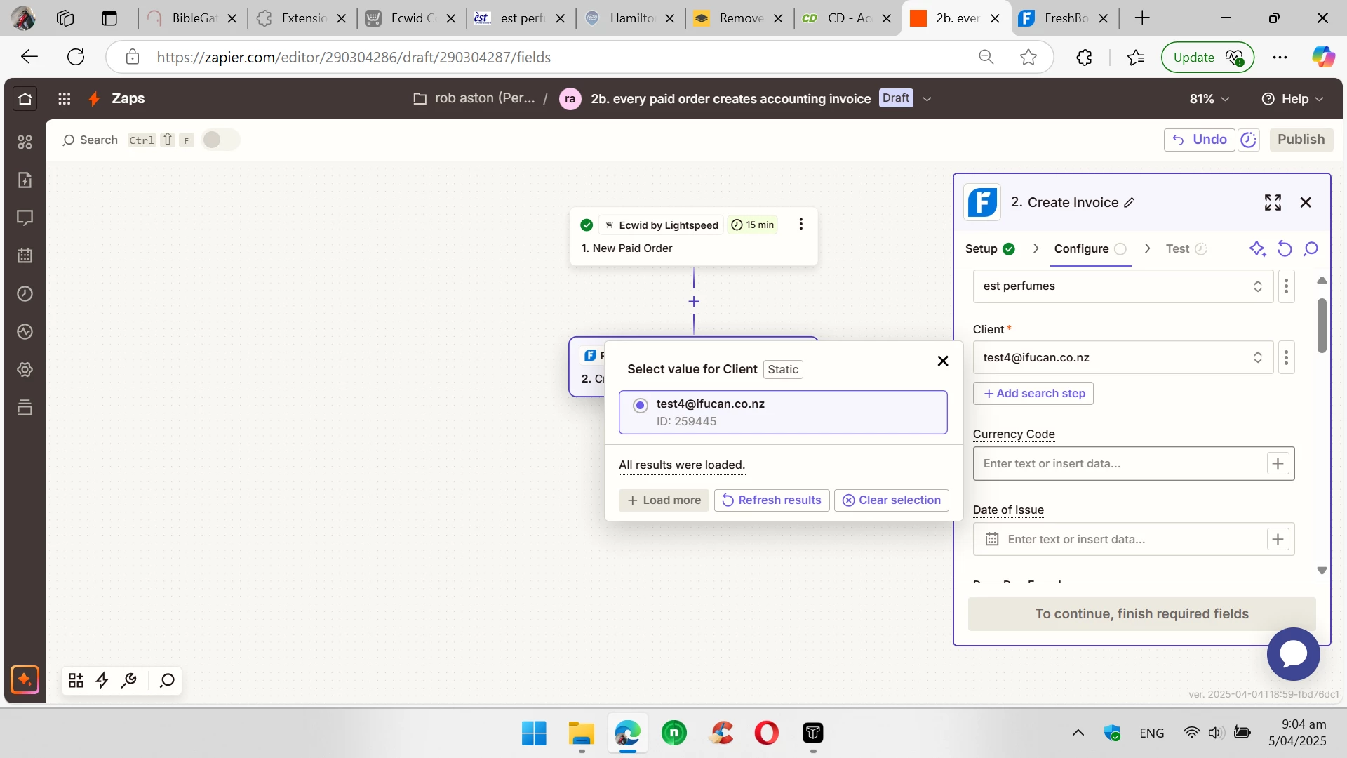 I have got the attached zap between Ecwid and Freshbooks To take a paid order and create an invoice