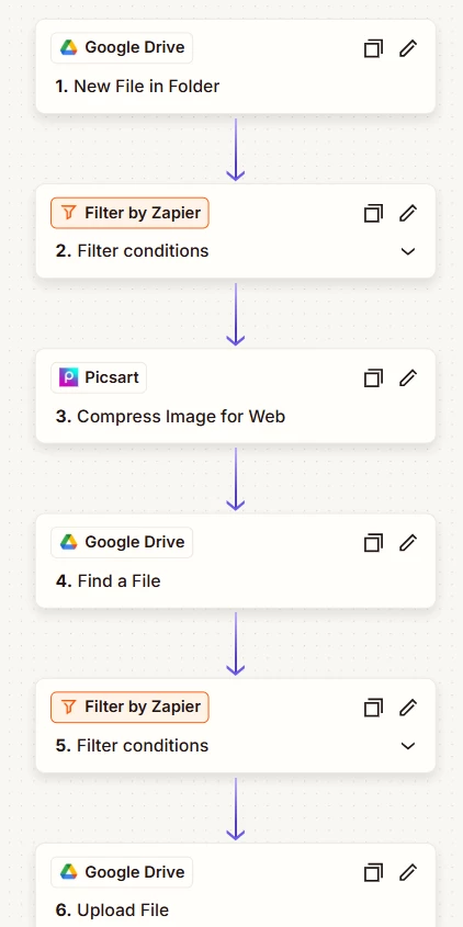 I’ve built an automation to compress images picked from a Raw Images folder and save them to a Compressed Images folder. The Zap works as expected for images around 200–300 KB but increases file size for images above ~300 KB, even at very low quality settings.