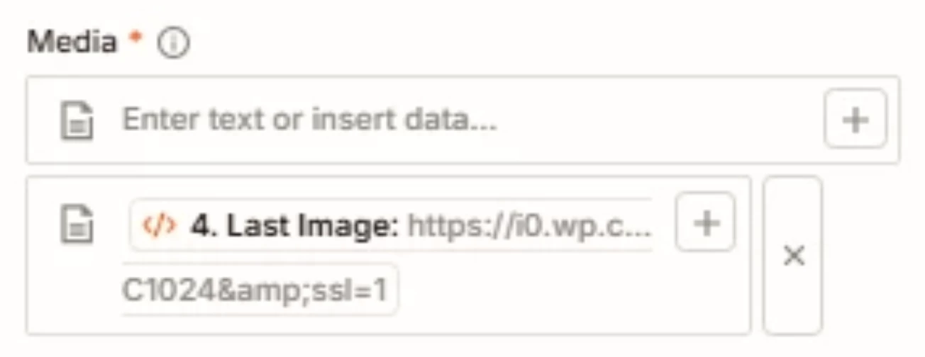 Currently, the field is filled from your Code by (ultima imagen) step, but that output looks like a WordPress CDN URL (https://0.wp.com/...) which can sometimes be blocked or not return a real image if accessed without browser headers. This is why is rejecting it.
