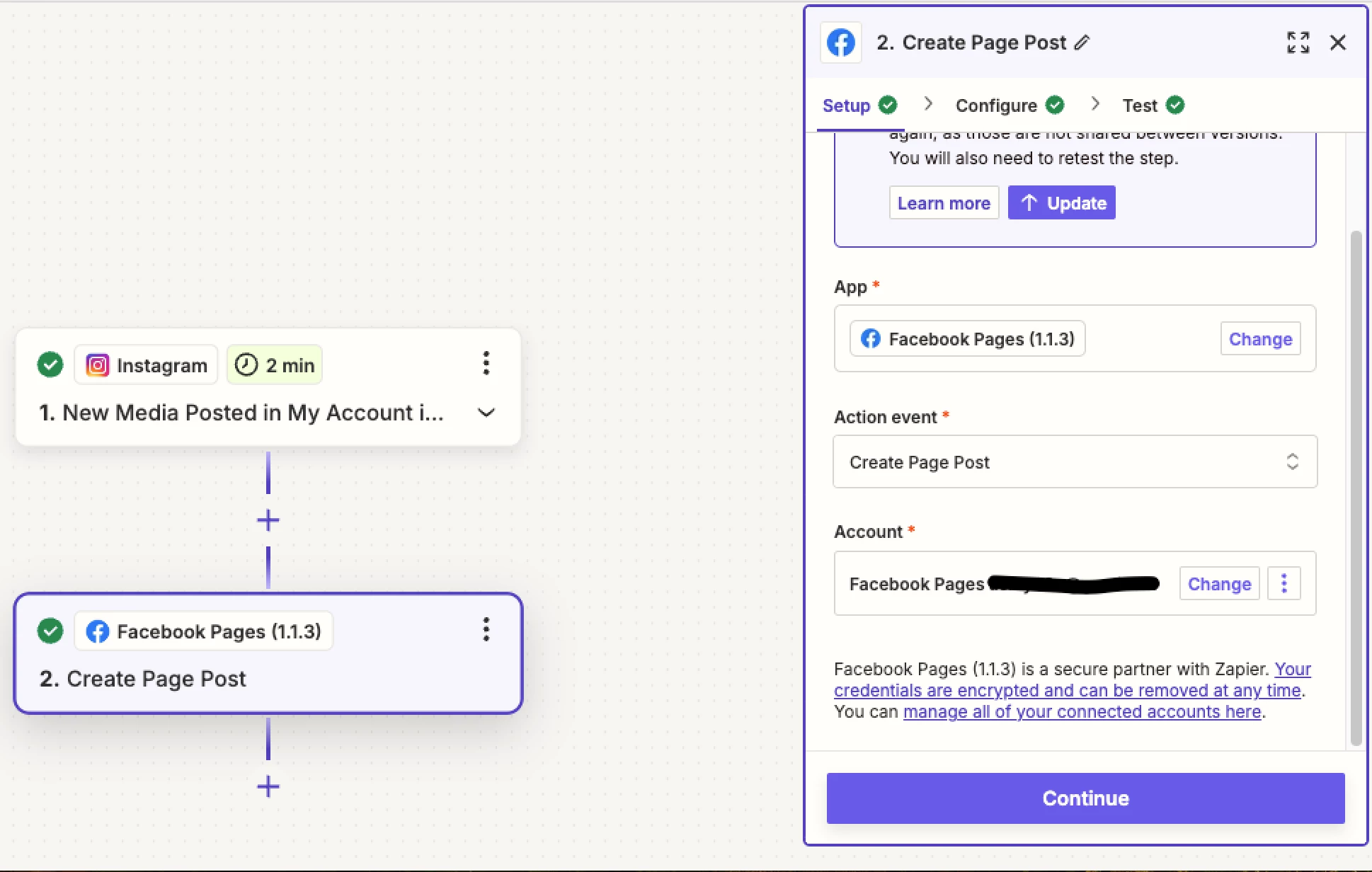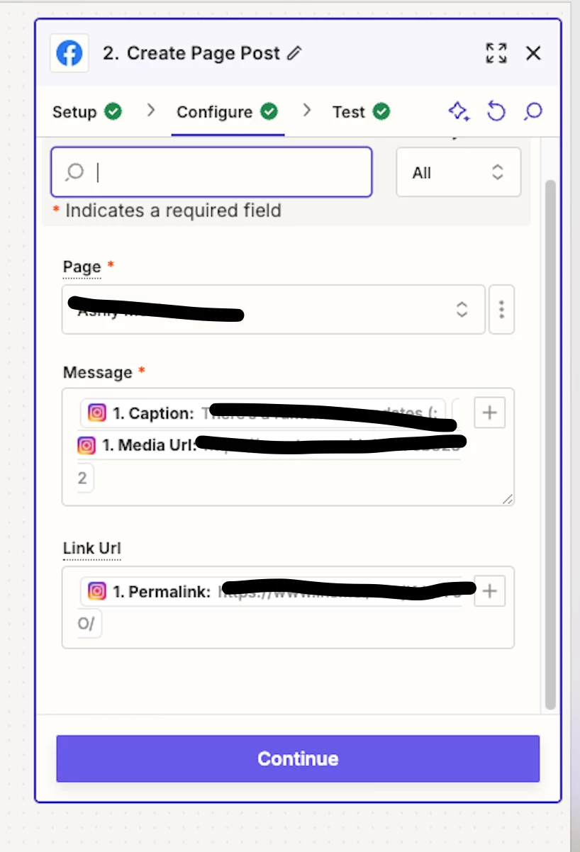 Instagram to Facebook Pages Zap: Media not displaying, only URL shows
