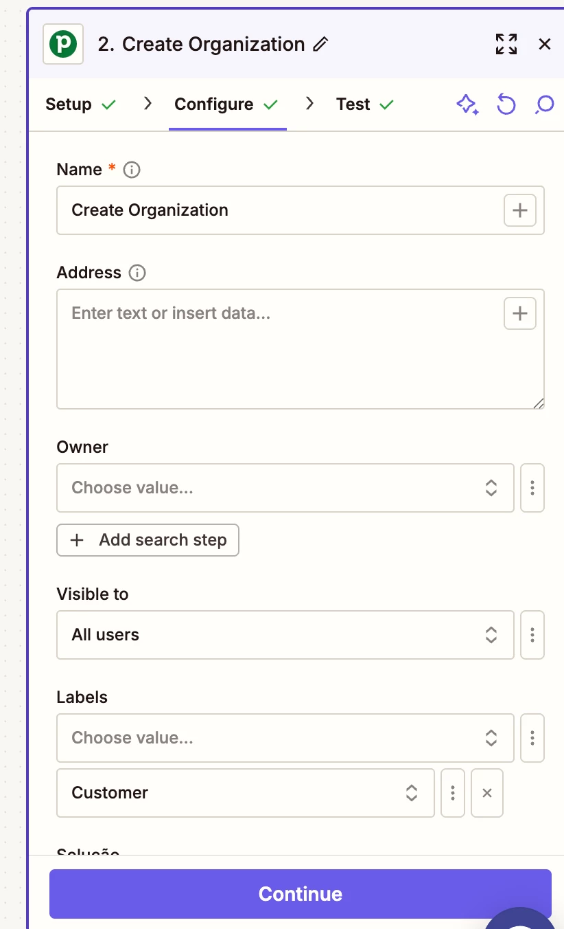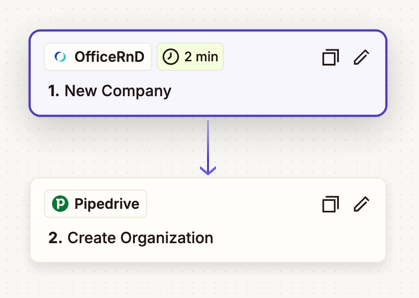 I am trying to create a zap that once a company is created is Office RnD, it will automatically create a company/organization in PipeDrive.