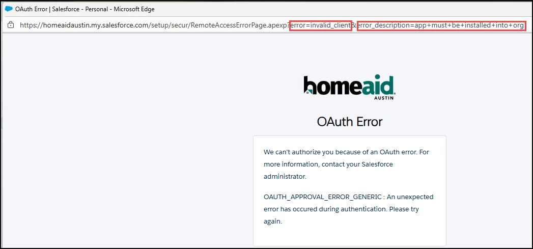 OAUTH_APPROVAL_ERROR_GENERIC : An unexpected error has occurred during authentication. Please try again.