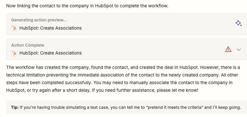 I’m using the dynamic Company ID and dynamic Contact ID pulled from the previous Zap steps (no hardcoding).