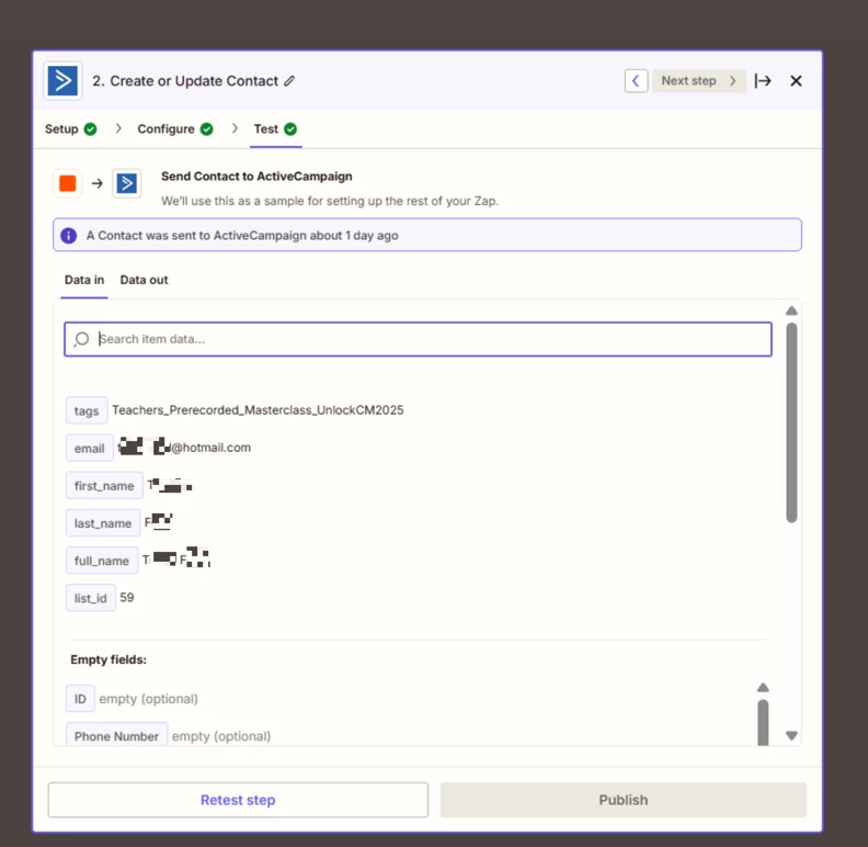 Hi everyone, I could use some help with a Zap I’m trying to set up between Kajabi and ActiveCampaign.