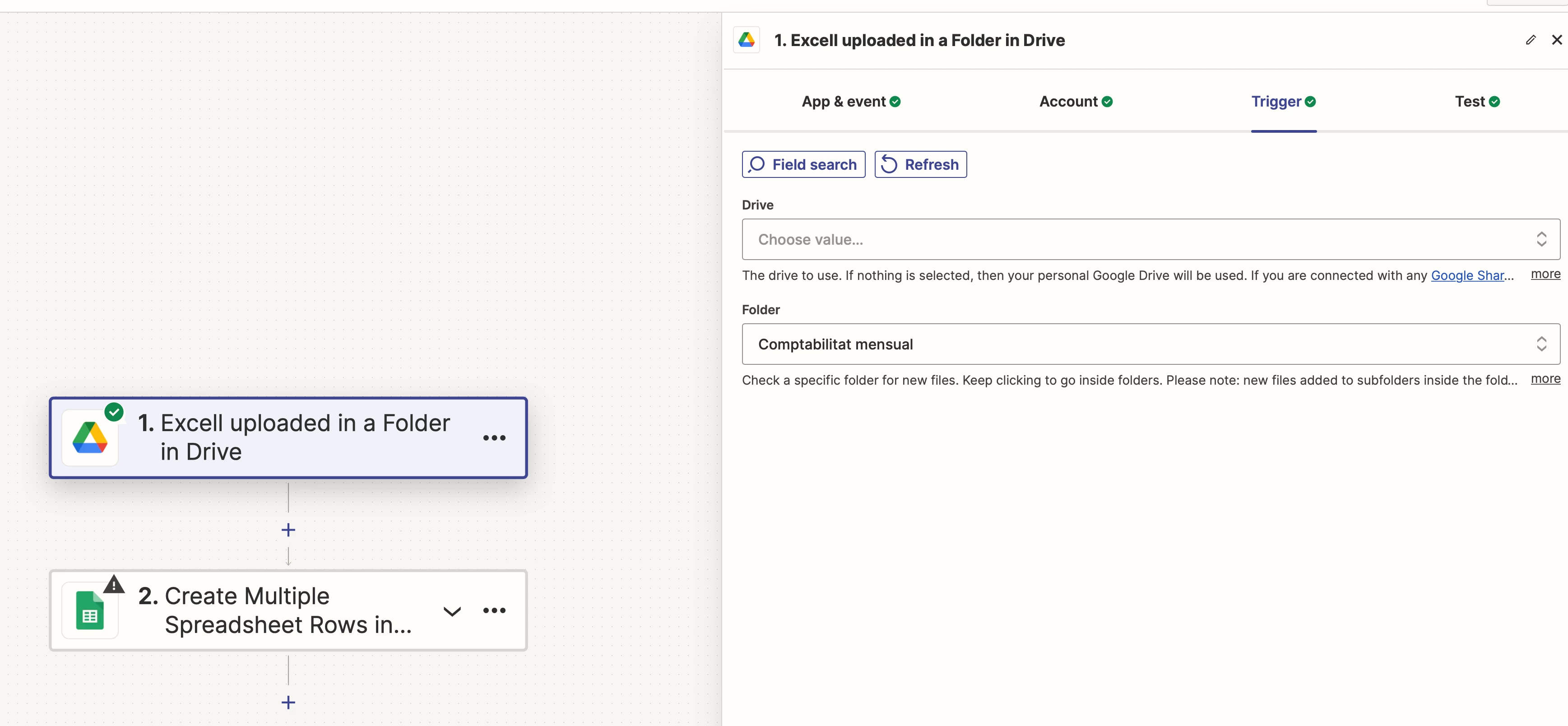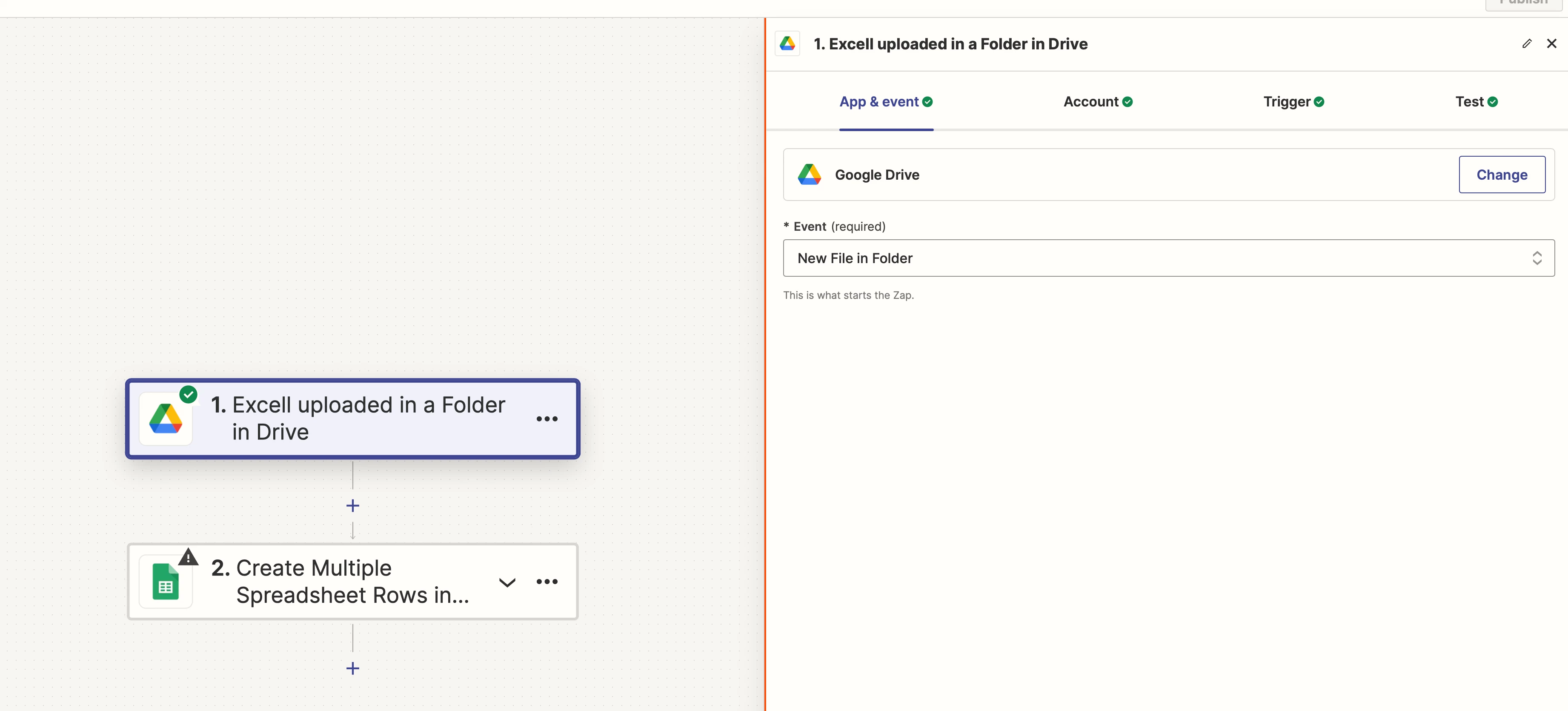 - The Zap is linked to the correct folder in the Google Drive account.