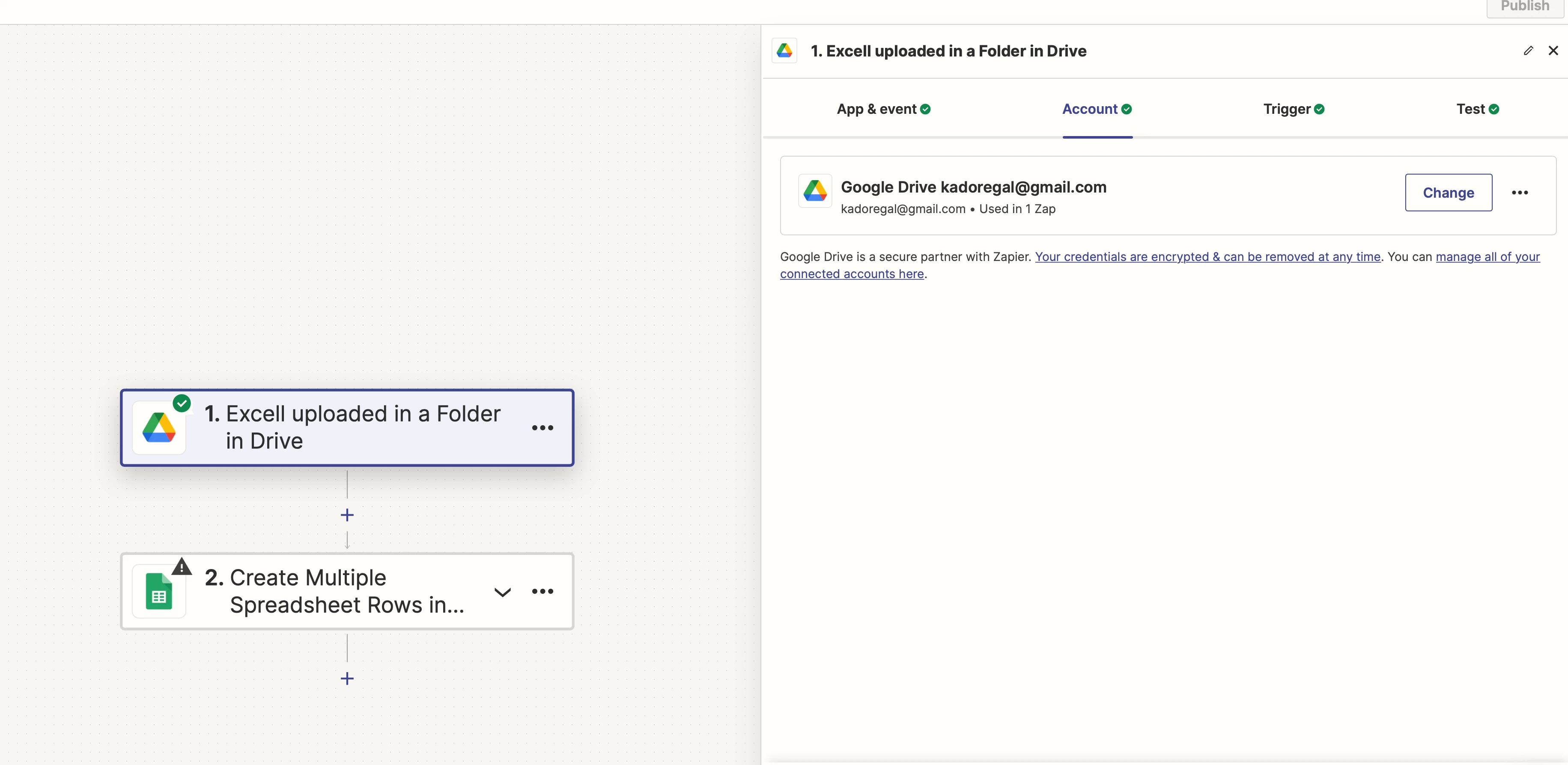 - The Zap is linked to the correct Google Drive account.