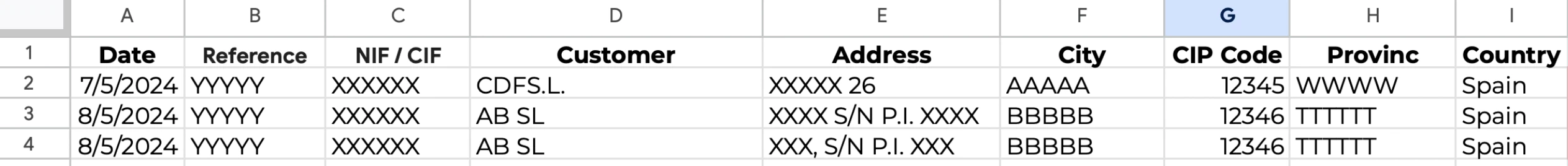 - The first row contains headers.