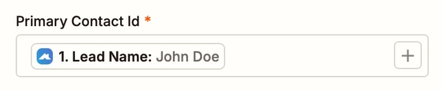 In Zap step 2, the Primary Contact ID field expects the JobNimbus ID for the Contact, rather than the Roofr Lead Name value.