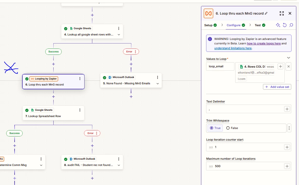 I have a standard loop step in my zap. The last record of the set of records is not being processed. I originally set the loop as: