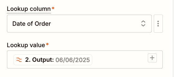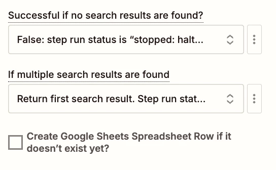 I’ve chosen the “Lookup Spreadsheet Row” action because it allows me to define the content of each ticket. In contrast, using “Get Many Spreadsheet Rows (Advanced)” returns all rows with today’s date combined into a single ticket, which isn’t what I want.