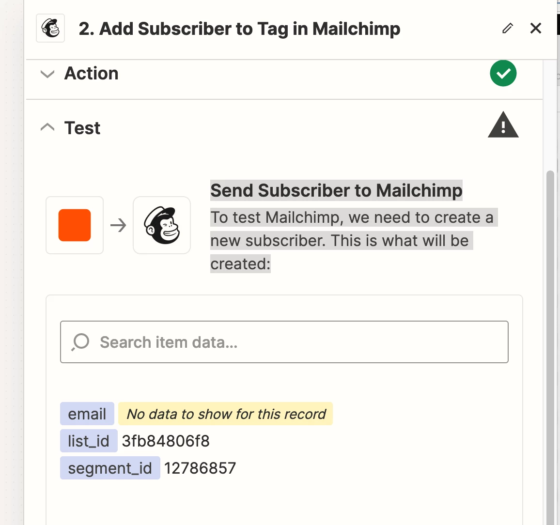 I am really not sure what to type into the “search item data” box. Nothing I put in works. I have tried an email address of one of the attendees/subscribers, I have tried just the word email.. It doesn’t really make sense to me what I am supposed to put here.