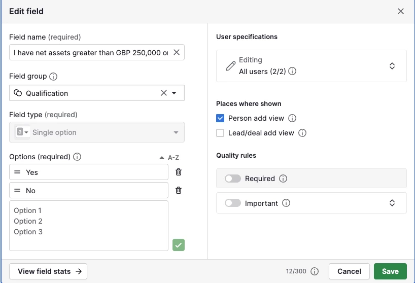 Mapping radio fields in Squarespace forms to single option fields in Pipedrive