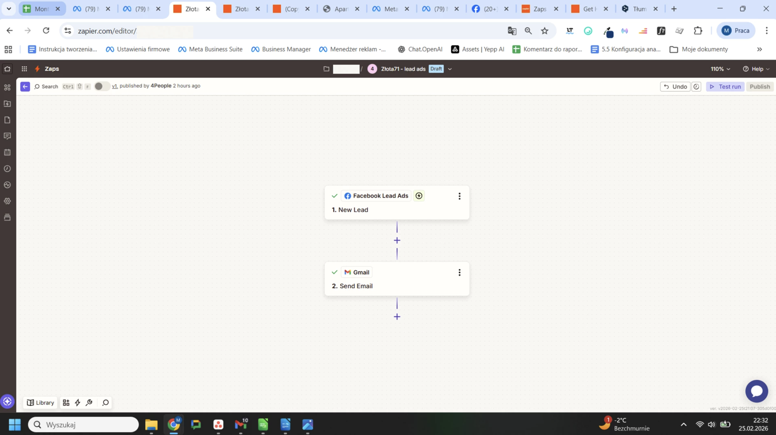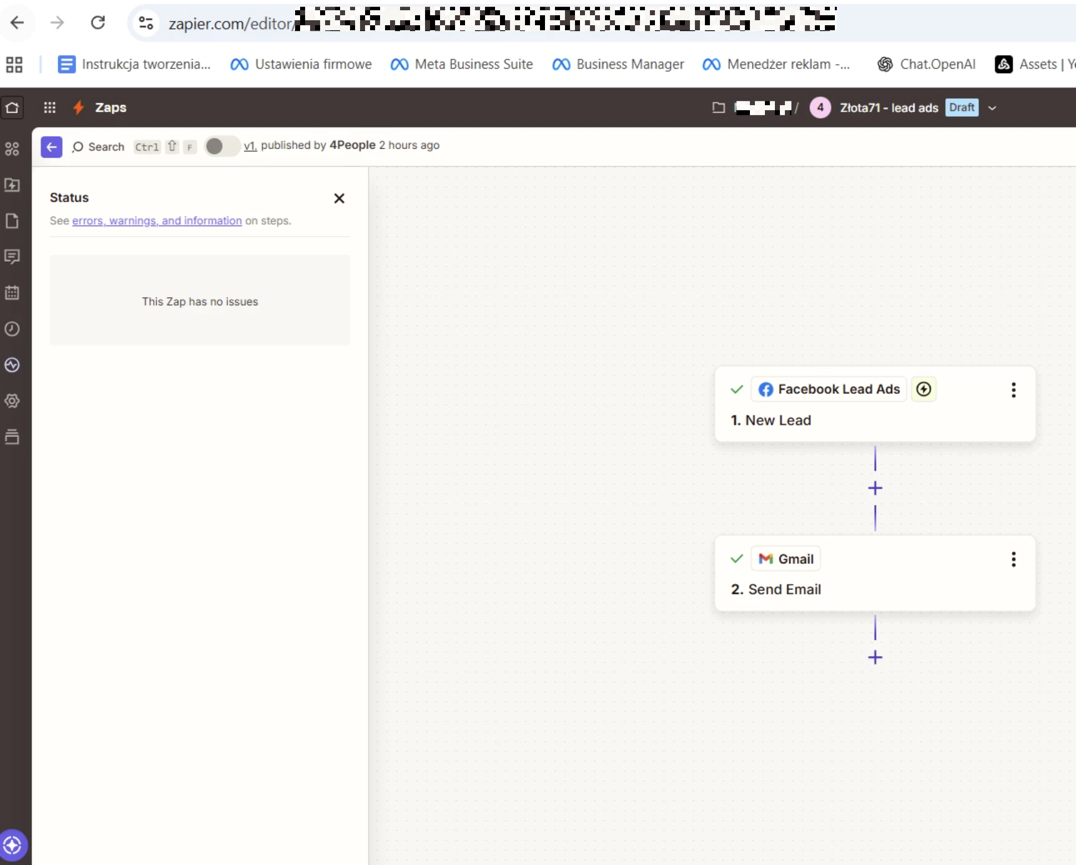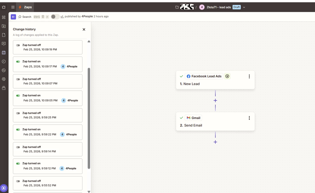Hello! My Zap is automatically turned off. There is no notification anywhere that something is wrong with the settings. After it says ‘Publishing’ and lights up green, I refresh the page and it turns grey and appears as disabled. This is a Zap in which Facebook Lead ads are redirected to Gmail. What could have gone wrong? How can I publish this Zap?