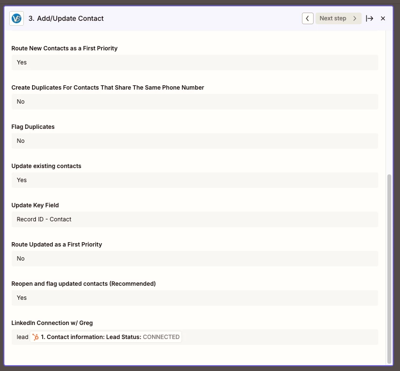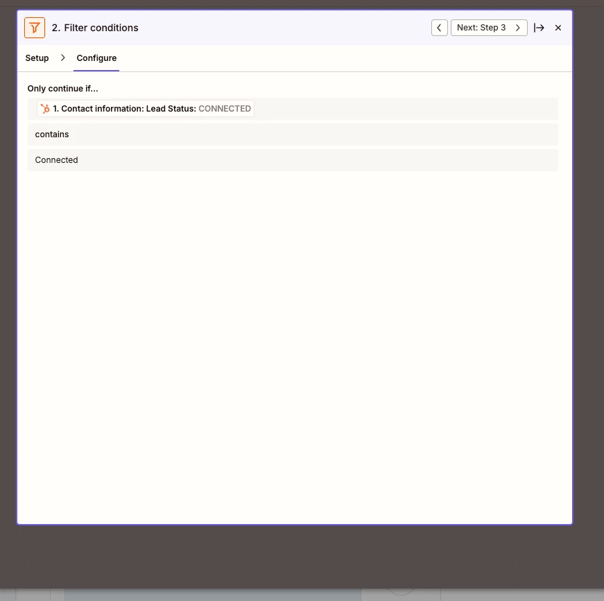 If not, can you share a bit more detail as to what part isn’t working exactly. For example, is it that the Zap is failing to trigger for contacts that are added/updated with that “connected” status, or is the issue more that the Zap is triggered and passing the filter as expected but the contact in VanillaSoft isn’t updating?