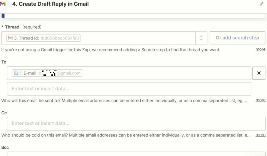 I am trying to create a draft email in Gmail tied to email submissions coming in from a Scheduler. So I built the Zap to use the New Email Search function and used the Subject of the email for it to search. The thread works when testing the Zap. It creates a Draft email on the right thread. When I publish it I get an error saying The app returned "Requested entity was not found." and the error is on the Draft portion of the Zap.