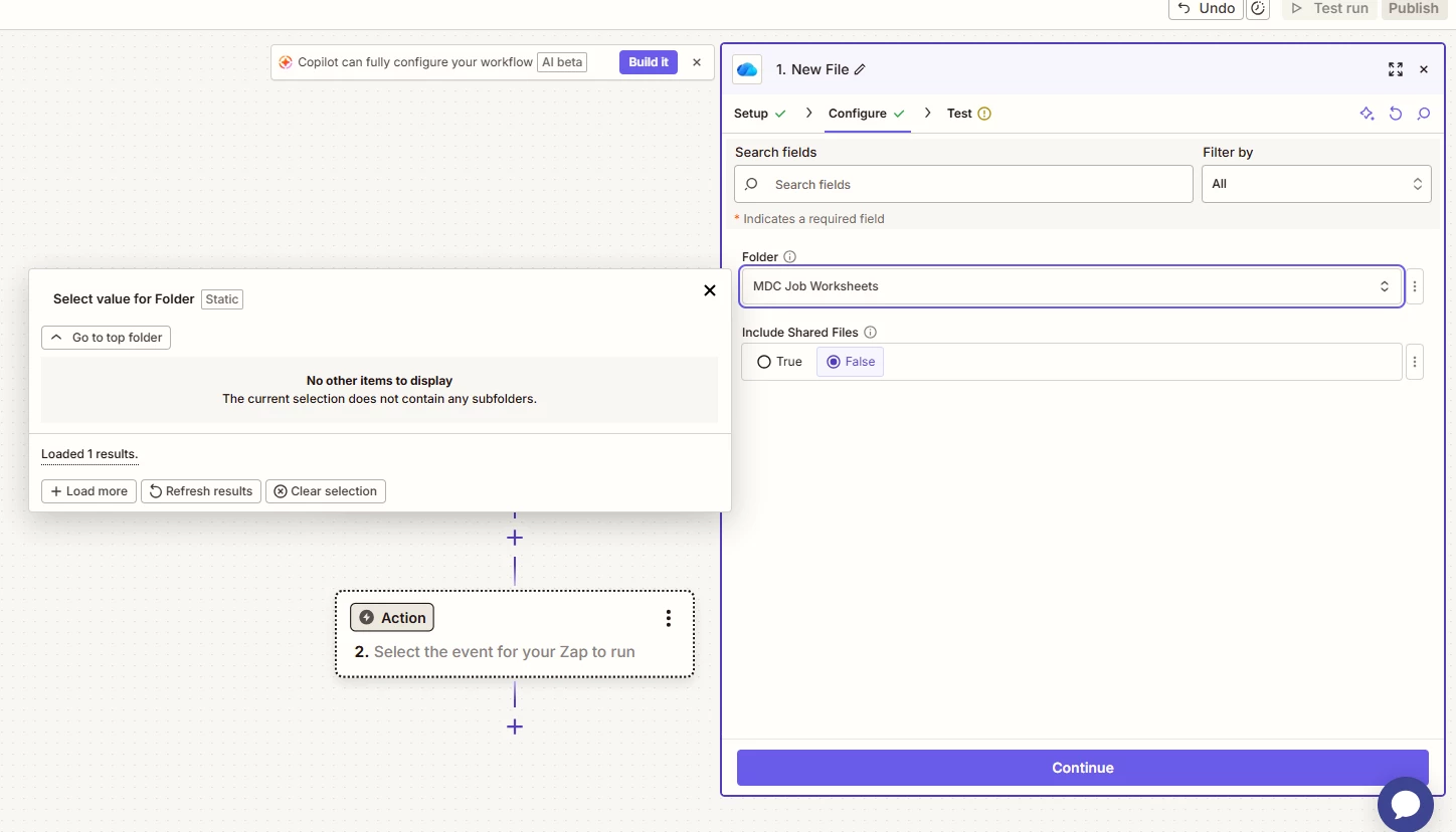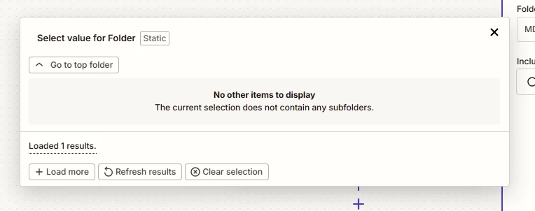 Setting up a zap where the trigger is New OneDrive file. I need it to monitor a specific folder on my OneDrive but when I’m configuring the folder, I select the parent folder and then it doesnt load any Subfolders even though there are many. I’ll click, +Load More a bunch of times and it might populate one folder but never the full list of subfolders.