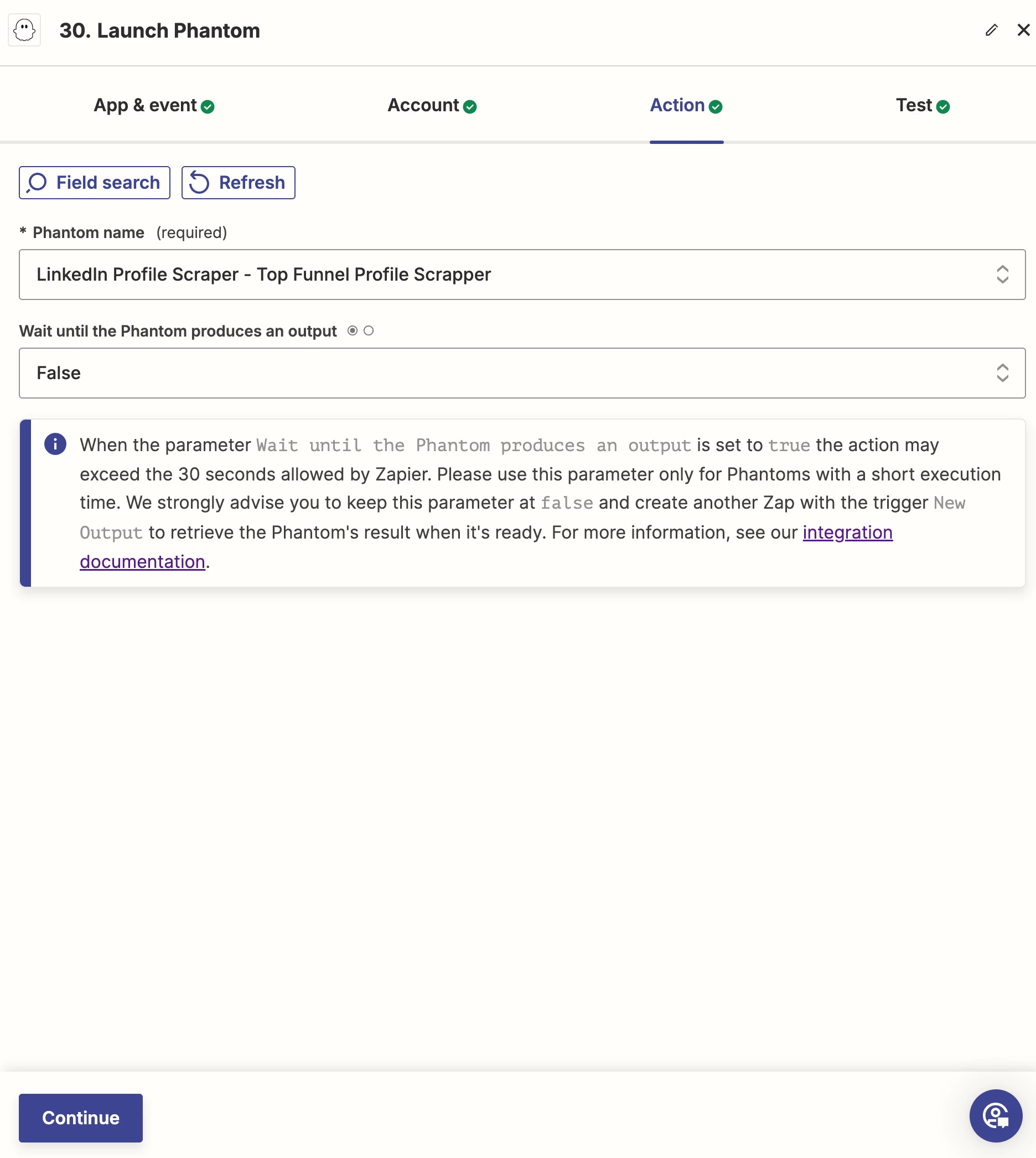 In the meantime, I recommend reaching out to PhantomBuster’s support team and let them know that you’re running into a bug when using their app in Zapier. Please note that the PhantomBuster developers are the ones who maintains and updates their integration in Zapier.