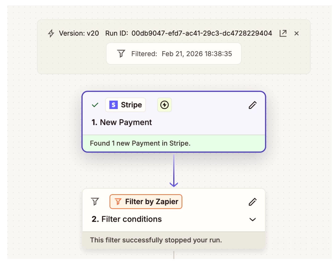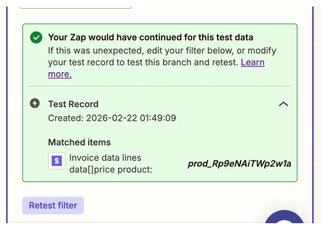 When the trigger is ‘new payment’, the product ID successfully filters through when testing - however when running a real zap, it unexpectedly gets filtered out (see two photos below). Having the trigger as ‘new payment’ allows me to pull customer details, though, which is what I need as well.