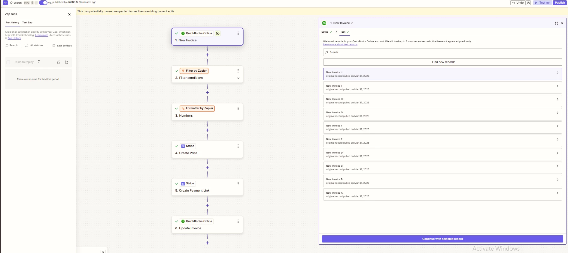 Eventually, all Invoices will eventually come through to Zapier, in bursts, as I described. But the time it takes for that to happen is far too long.