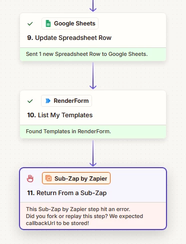 I’m using RenderForm → List Templates in a Sub Zap and get the error