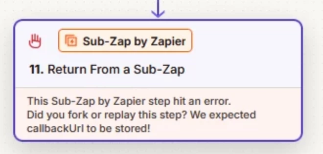 Did you fork or replay this step? We expected callbackUrl to be stored!